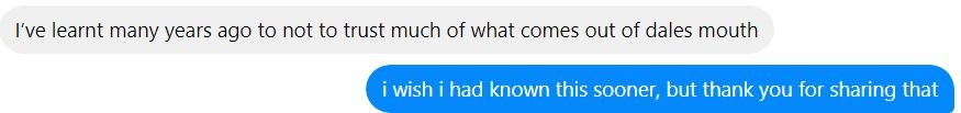 NCR keeps growing, meaning more people see I’ve been involved with Dale and DM. Clearly I’m not the first and I start receiving more messages from Dale’s victims as I keep trying to arrange collection of all my parts.