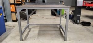 It’s September 2022, I’ve finished restoring the fab bench, it needed the top flattened out, a rear lip added, and some reinforcements installed to sure it up. It gets some paint and some rubber feet to finish it off – pretty happy with that.