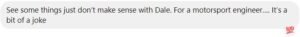 You’d think that would put an end to the lies, but nothing ever changes. Worse still, I’ve been contacted out of the blue by not 1 but two other people in a similar boat, having seen my previous posts tagging DM Motorsport, their stories are equally concerning and there’s an obvious pattern – big claims, no delivery. It’s no wonder Dale has run off to another state with his tale between his legs.