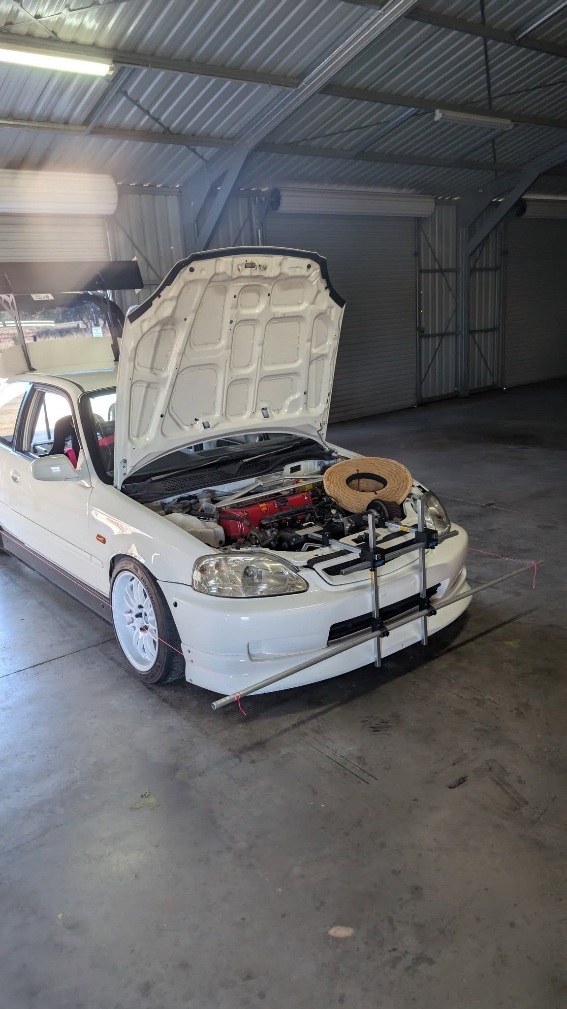 – Wheel cribs/stands: You will need space to get under the car and make adjustments. Ideally you will do this with the car fully loaded on its suspension (not in the air) to avoid needing to settle the suspension after each change to make your measurements repeatable.