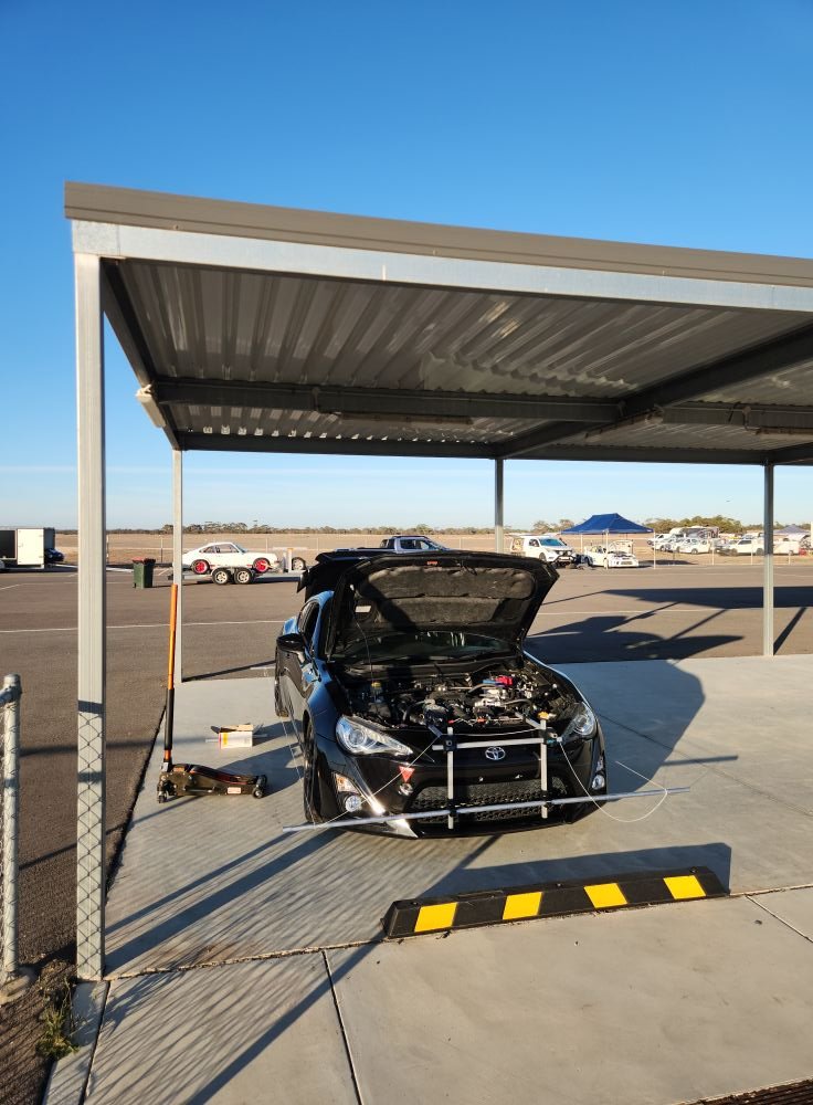 – Slip plates: Allowing the wheel to move freely during adjustment will avoid needing to move the car/bounce the suspension etc. I converted my TTI Wheel Dollies into slip plates with $100 worth of 6mm plate steel (fine for 86, but you may need thicker for a heavier car) and some thick plastic slips with silicon spray in-between them (see pics). Commercial options also exist that are not prohibitively expensive (see pics).
