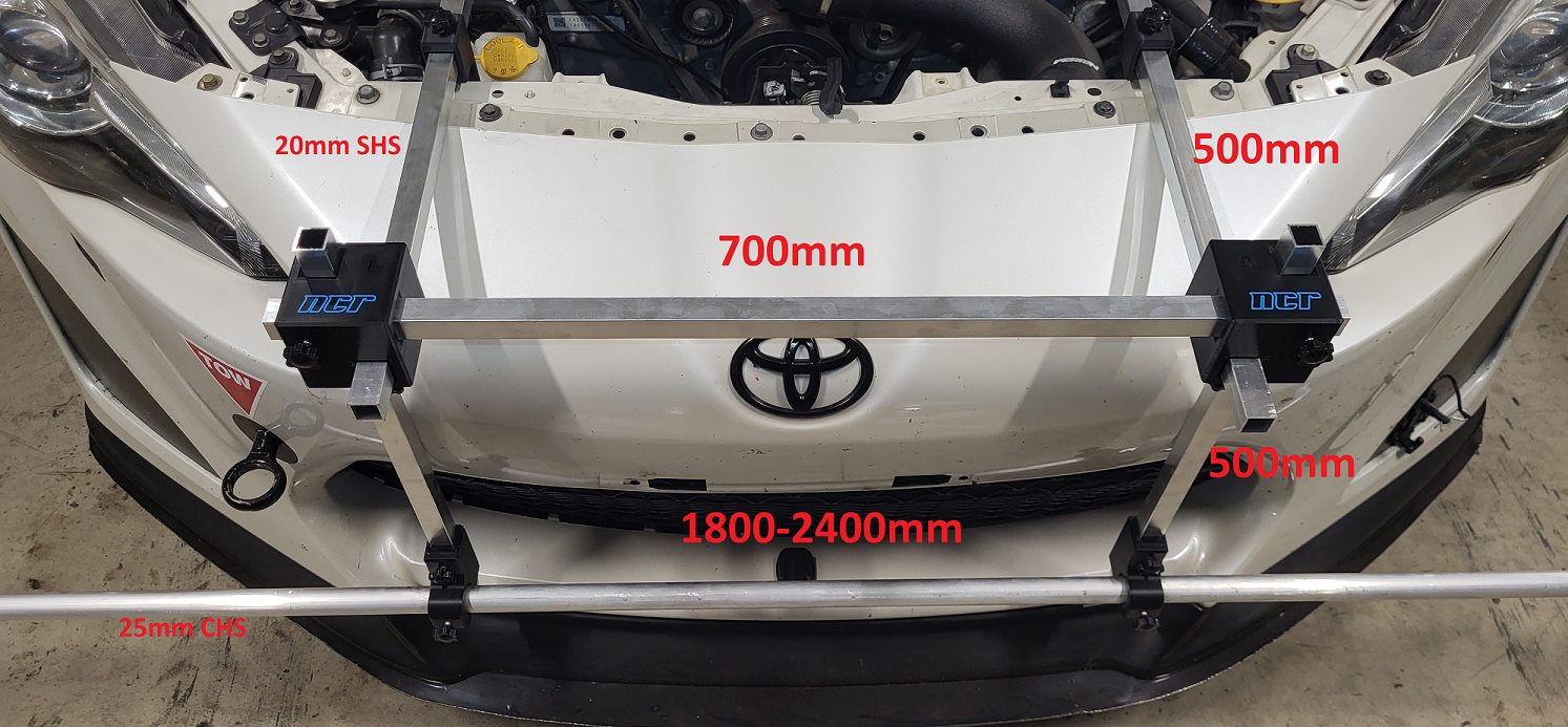 One suggestion I would add is regarding track width, you can ignore differences in the cars track width front to back by first ensuring your horizontal bars (CHS) are the same length front and rear and then cutting notches inset at both ends of each bar at matching distances. For example, cut notches at 25mm, 50mm, 100mm in from each end, whatever works for your car width and bar length (see pic below).